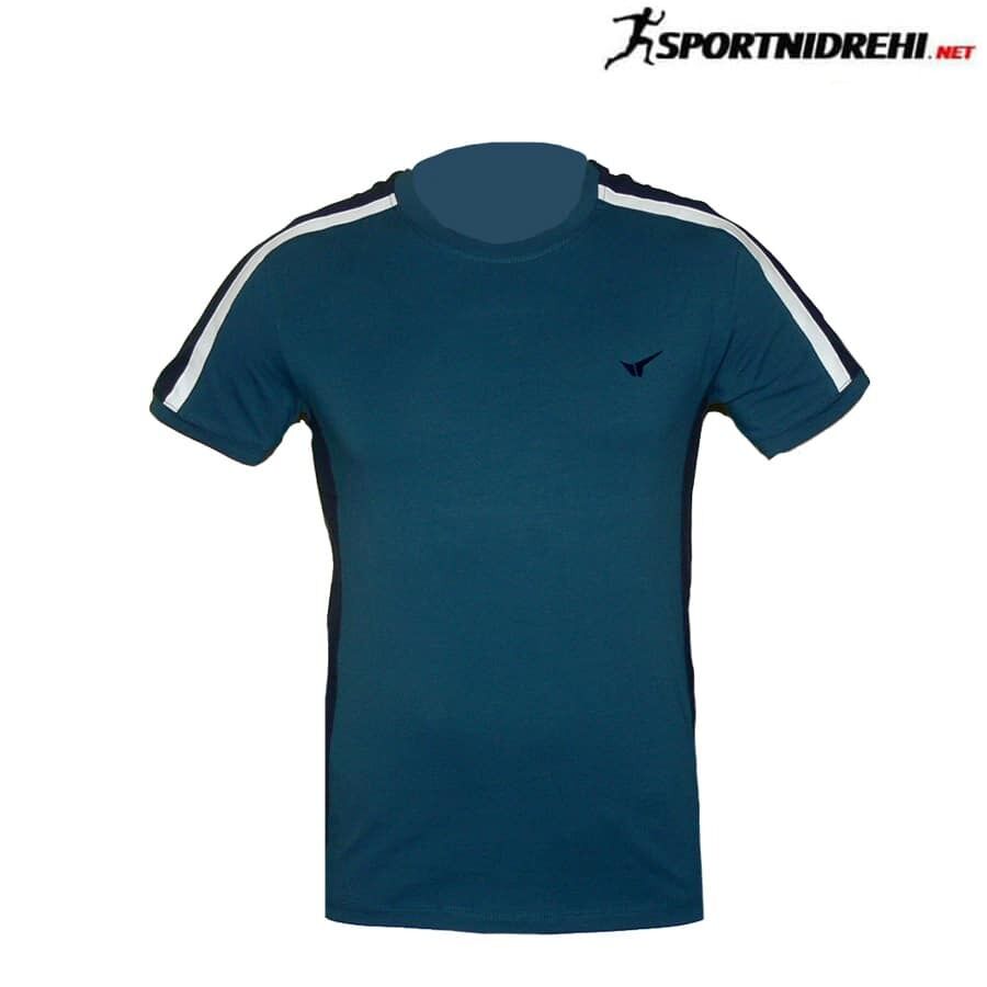 Мъжка спортна тениска REDICS 240028, петролено зелено с тъмносиньо, памук и ликра. Произведено в България. Материята е 90% памук и 10% еластан. Подходяща е както за спорт, така и за ежедневно носене. Високо качество на материя и изработка.