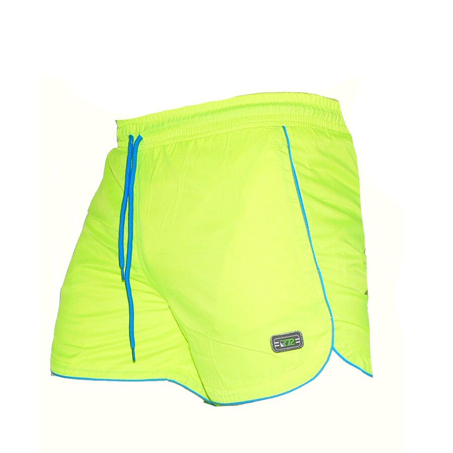 Мъжки бански RAYMOND 149, електриково зелено, полиестер. Произведено в България. Материята е бързосъхнещ полиестер. Банските имат мрежест бандаж, връзки за стягане, 2 джоба отпред с ципове и 1 отзад без цип. Високо качество на материя и изработка.