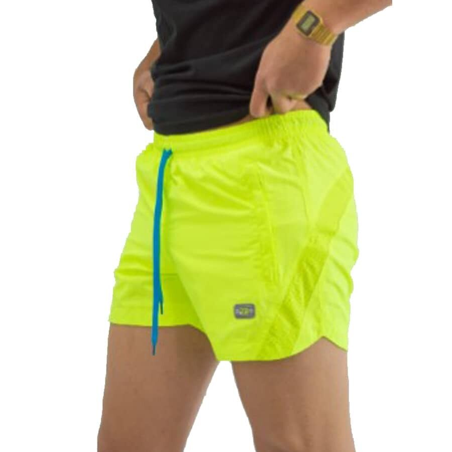 Мъжки бански RAYMOND 173, електриково зелени, полиестер. Произведено в България. Материята е бързосъхнещ полиестер. Банските имат мрежест бандаж, връзки за стягане, 2 джоба отпред с ципове. Високо качество на материя и изработка.