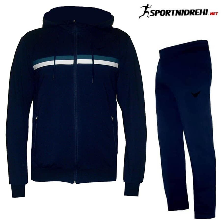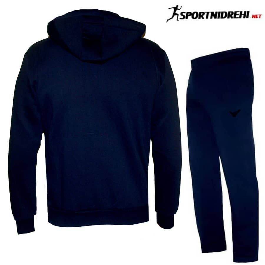 Мъжки спортен екип REDICS 230189, тъмносин, памук и ликра. Произведено в България. Материята е 77% памук, 17% полиестер и 6% еластан. Екипа има качулка, която е на цип и се сваля. Горнището има 2 джоба, долнището също има 2 джоба. Всички джобове са с ципове. Долнището е с прав крачол. Високо качество на материя и изработка.