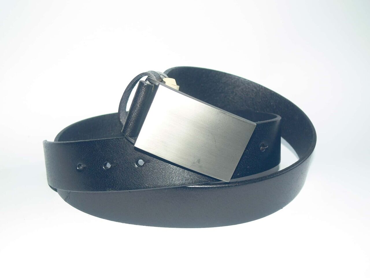 Мъжки спортен колан, черен, естествена кожа. Катарамата е масивна метална плочка. Дължината на колана е от 115 см. до 130 см, ширината е 3,7 см. Подходящ за дънки или спортни панталони.