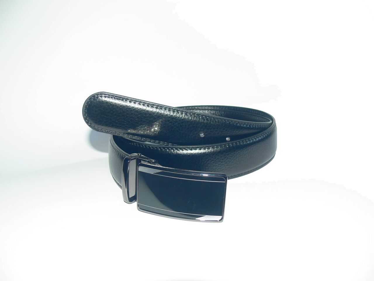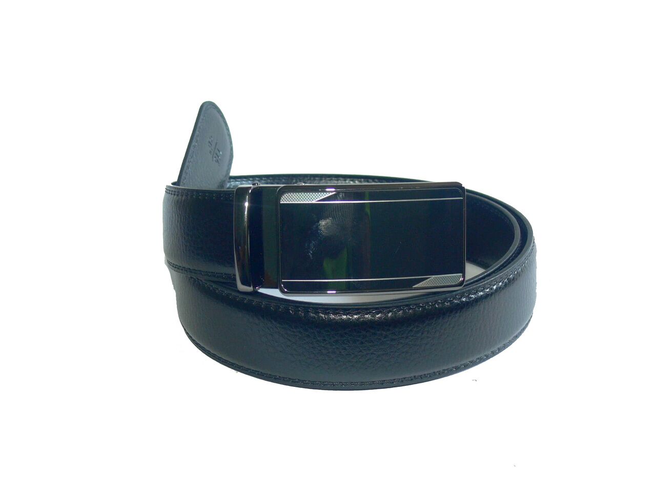 Мъжки спортен колан, черен, естествена кожа. Катарамата е с механизъм тип " автомат ". Дължината на колана е от 115 см. до 130 см, ширината е 3.5 см. Подходящ е за официални и спортни панталони, също така и за дънки.