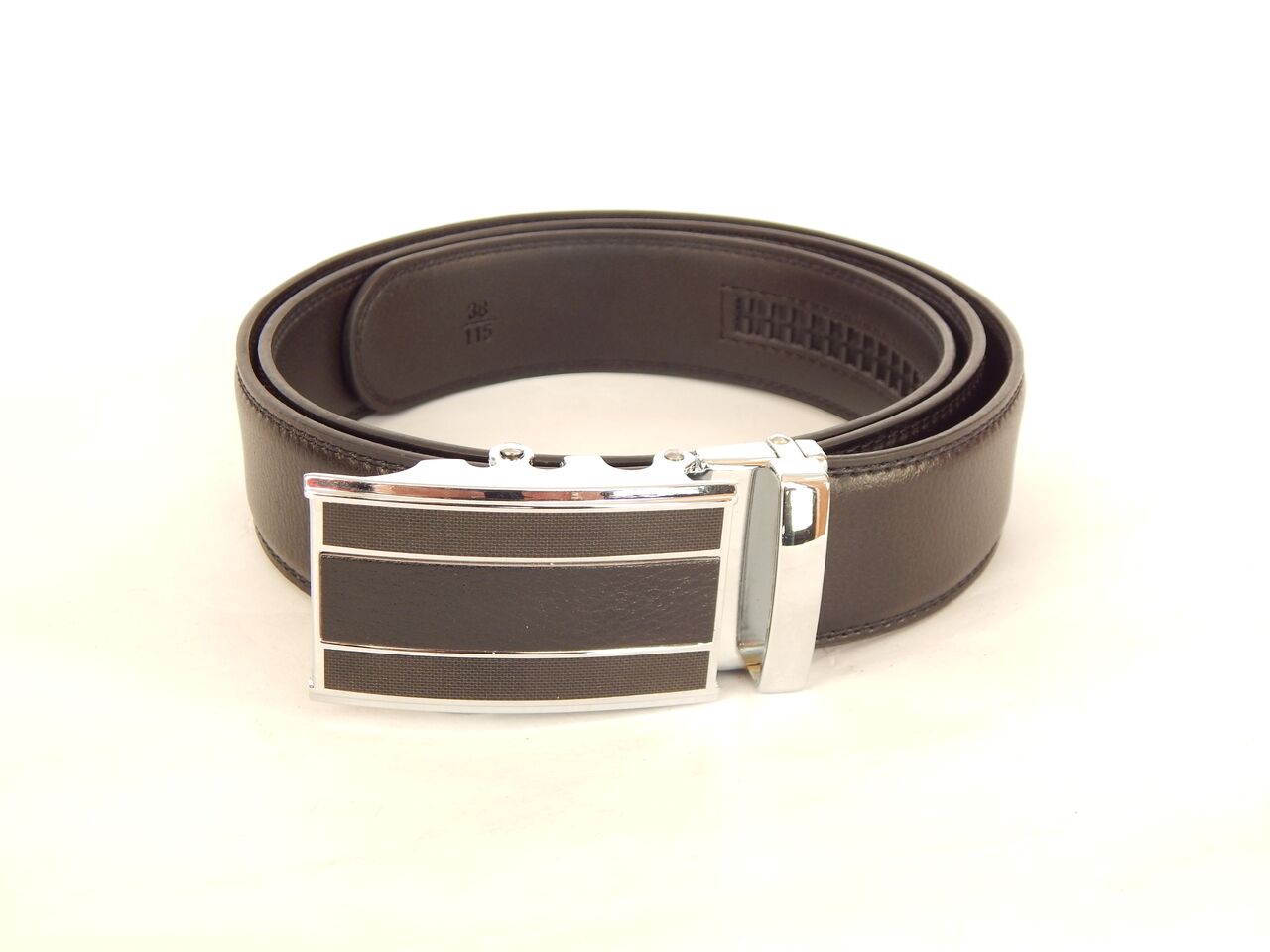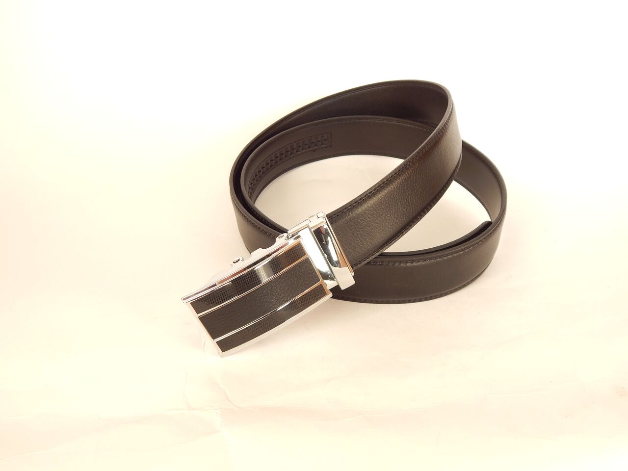 Мъжки спортен колан, черен, естествена кожа. Катарамата е с механизъм тип " автомат ". Дължината на колана е от 115 см. до 130 см, ширината е 3.5 см. Подходящ е за официални и спортни панталони, също така и за дънки.