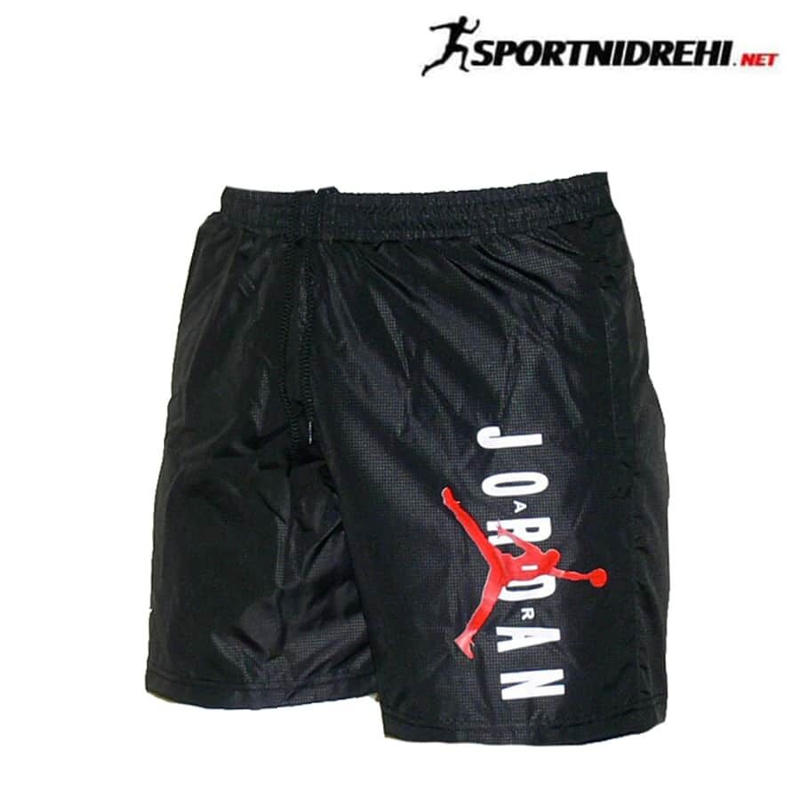 Мъжки спортни шорти JORDAN, черни, полиестер. Материята е бързосъхнещ полиестер. Шортите имат мрежест бандаж, връзки за стягане и 2 джоба отпред с ципове. Високо качество на материя и изработка.