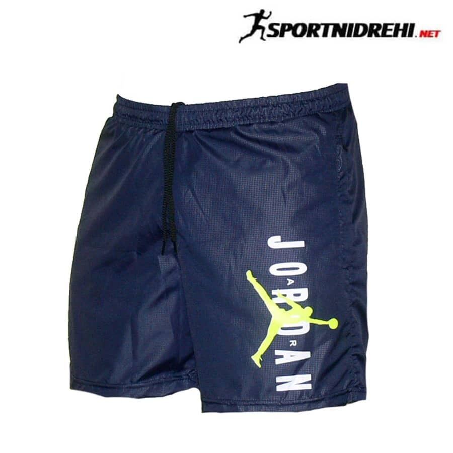 Мъжки спортни шорти JORDAN, тъмносини, полиестер. Материята е бързосъхнещ полиестер. Шортите имат мрежест бандаж, връзки за стягане и 2 джоба отпред с ципове. Високо качество на материя и изработка.