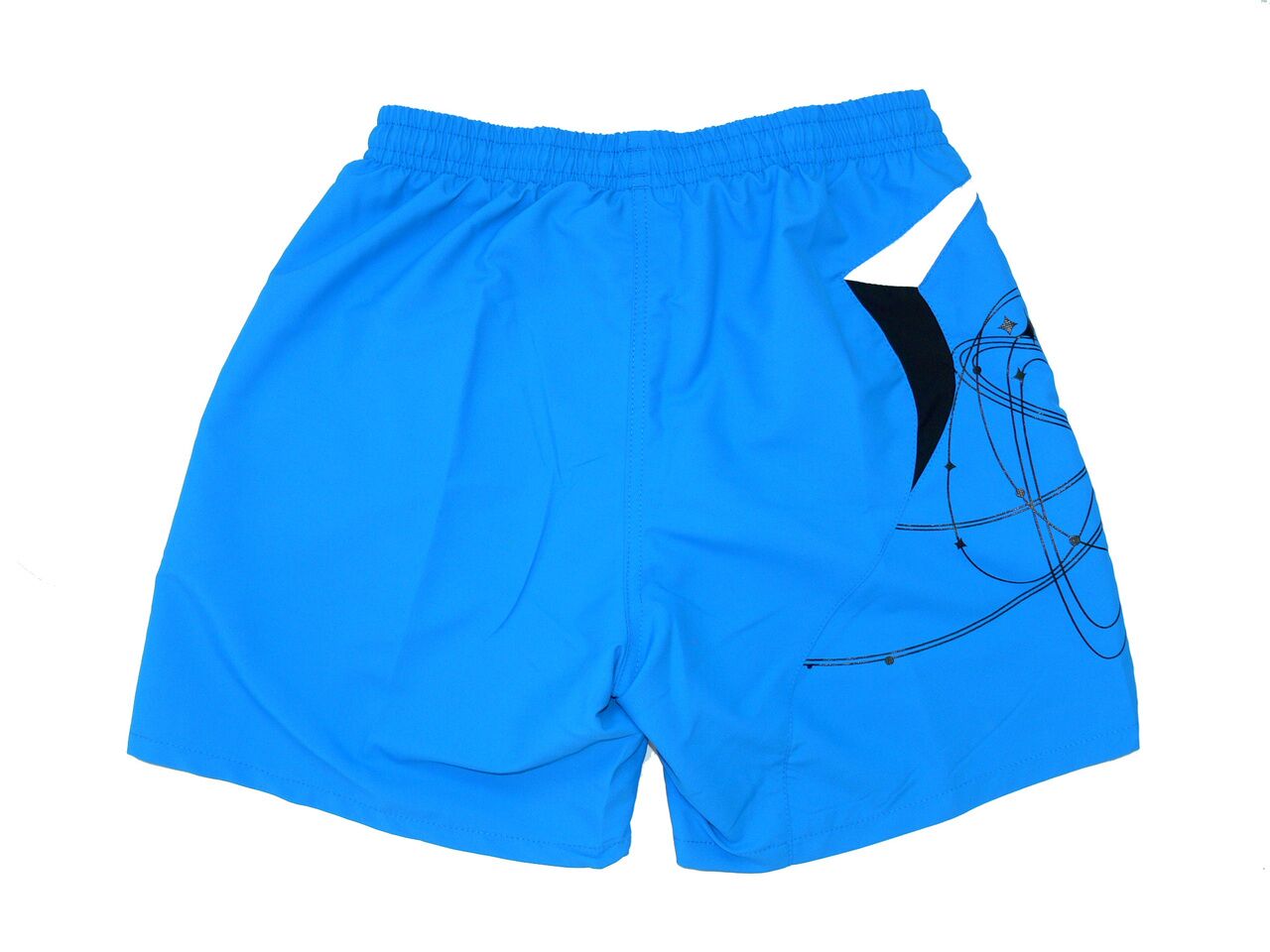 Мъжки спортни шорти JUSS, сини, полиестер. Произведено в България. Материята е бързосъхнещ полиестер. Спортните панталони имат мрежест бандаж, връзки за стягане и 2 джоба отпред с ципове. Високо качество на материя и изработка.
