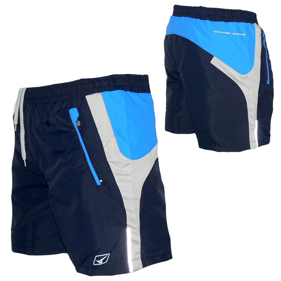 Мъжки спортни шорти REDICS 180020, тъмно сини, полиестер. Произведено в България. Материята е бързосъхнещ полиестер. Шортите имат мрежест бандаж, връзки за стягане и 2 джоба отпред с ципове. Високо качество на материя и изработка.