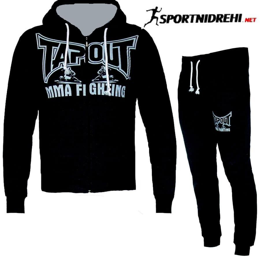 Спортен екип TAPOUT MMA, черен, памук и ликра, с качулка. Горнището има 2 джоба, долнището има 2 джоба отпред и 1 отзад. Долнището е стеснено долу на крачола с широк ластик. Горнището има качулка.